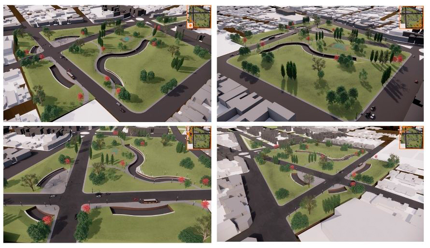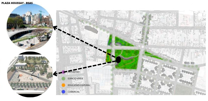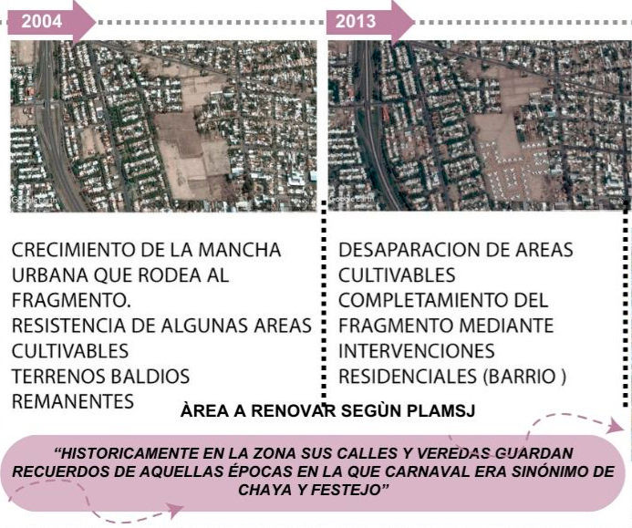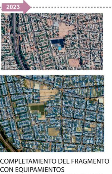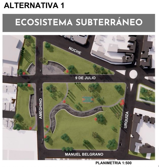 TERRENOS VACANTES-OCIOSOS VINCULADOS A LA TRAZA DEL FERROCARRIL La tendencia de evolución del fragmento, nos da la pauta de repensar el completamiento del mismo y pensarlo como un área de oportunidades dentro de la ciudad. Resignificar y reutilizar este espacio en pos de una mejora urbana tanto perceptual como funcional, generando espacios públicos organizadores de la ciudad o del fragmento urbano adyacente. Se diseña un ecosistema subterráneo donde la mayoría de las actividades y viviendas estén bajo tierra, dejando la superficie para áreas verdes, parques y espacios de ocio. Esto podría ayudar a mantener la temperatura constante y aprovechar al máximo el espacio disponible. Dejando así espacios verdes y públicos para la población, sin dejar de lado la idea de densificar el area intensiva del AMSJ. Plaza Flotante en el Cielo: Crea una plaza pública flotante por sobre las vías de circulación, mediante estructuras suspendidas y cristalinas. Esta plaza podría ofrecer vistas panorámicas de la ciudad y albergar una diversidad de actividades dependiendo de su ubicación, así es vemos en la planimetría de propuesta 4 plazas flotantes que contienen actividades deportivas, culturales y comerciales. La idea es promover la actividad física, la salud y el bienestar de la población en general sin barreras arquitectónicas para así lograr la inclusión social, generando así un parque inclusivos para personas con discapacidad y adaptado a las circunstancias ambientales de hoy en día como son la sequia y la aridez propia de San Juan Espejo Jimena Reus Franco Góngora Gabriel Uda Guillermina Reciclaje Urbano: Renovar la Identidad a Través de los Espacios Olvidados
