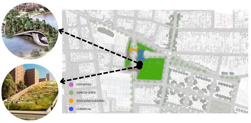 Generación de espacios deportivos y espacio público, inserto en un parque